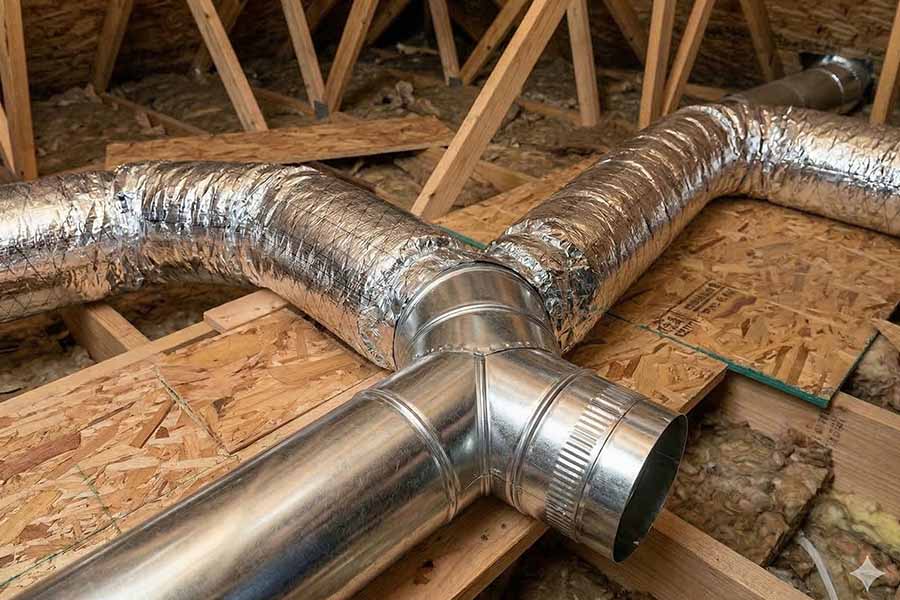Sheet metal ductwork is the most durable option. Galvanized steel ducts resist damage, maintain shape over time, and provide smooth surfaces for efficient airflow. We use rigid metal ducts for main trunk lines and branches.
